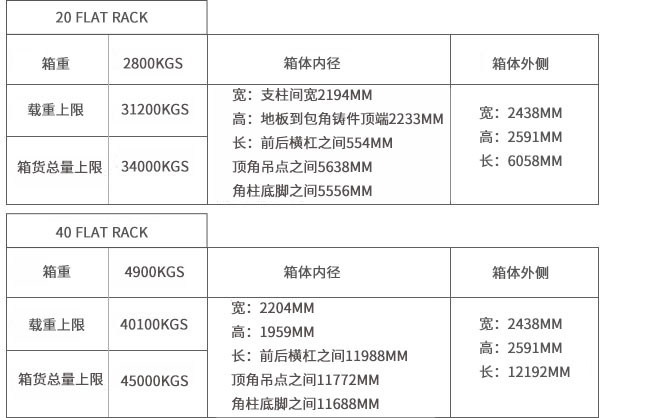 1、20FR箱货总重不超过28T40FR箱货总重不超过39T